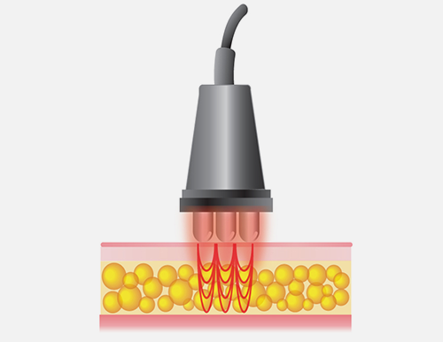 照射された超音波によって、空洞現象(キャビテーション)が起こり、脂肪細胞を縮小させます。
